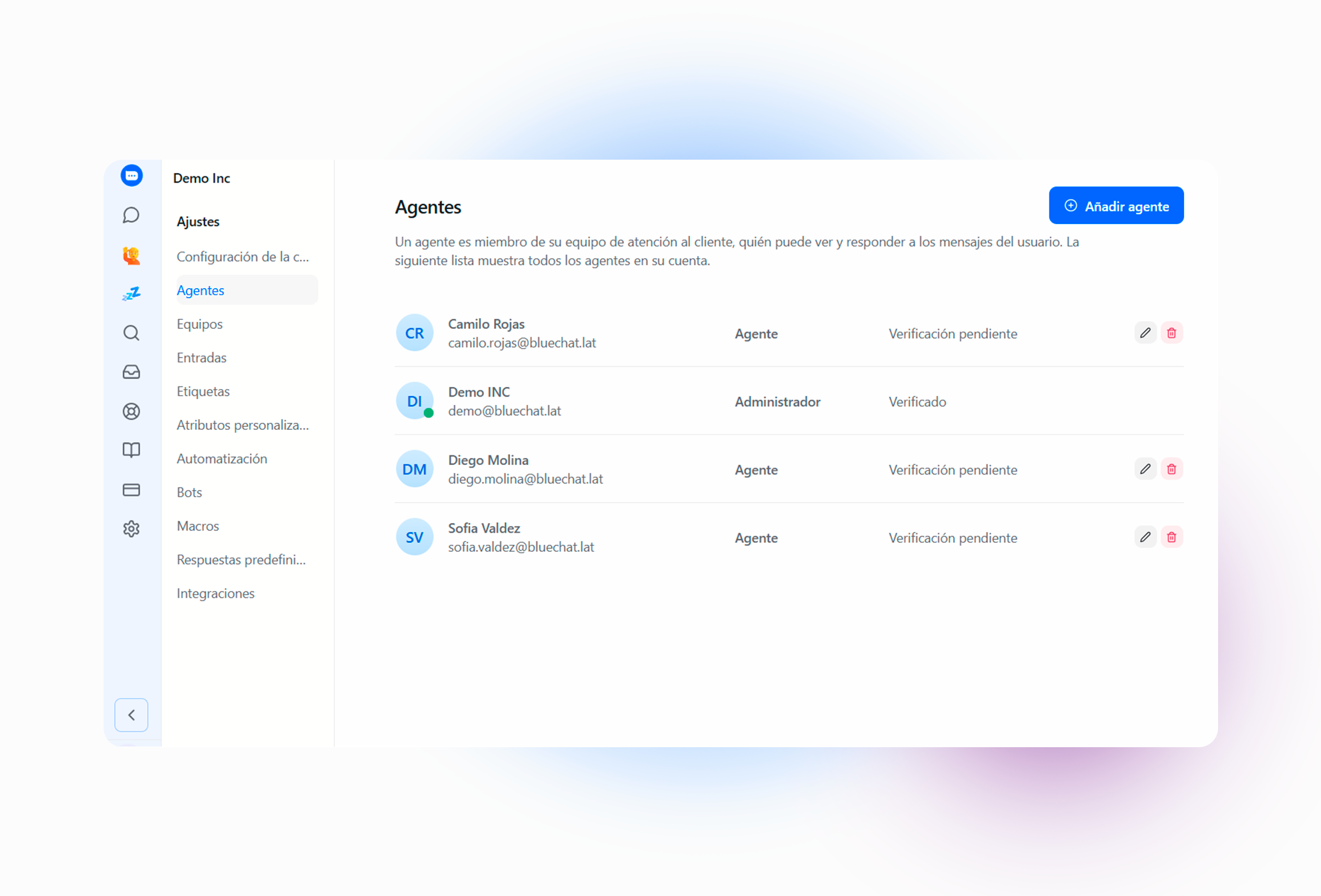 Invita agentes, organiza equipos y asigna conversaciones automáticamente. Bluechat permite que tu equipo trabaje coordinado, sin perder mensajes ni clientes.